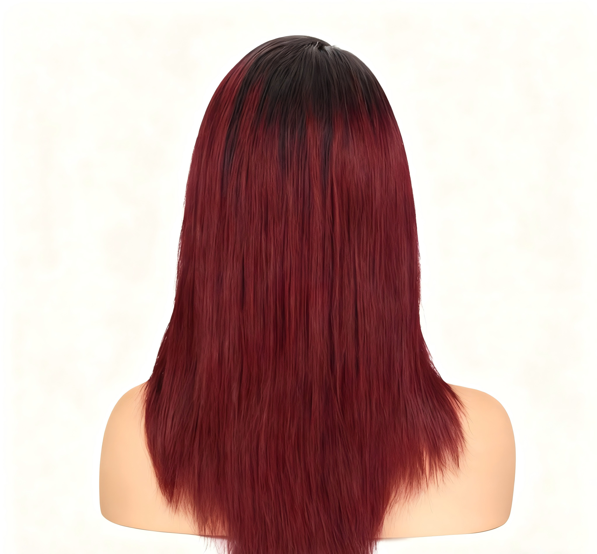 Sleek & Modern: Ombre Straight Lob Lace Front Wig Embrace a chic, modern look with our premium Straight Lob (Long Bob) Lace Front Wig. This wig features a flawless, natural-looking dark root that melts into a beautiful vibrant color, crafted for a high-fashion appearance and versatile styling.