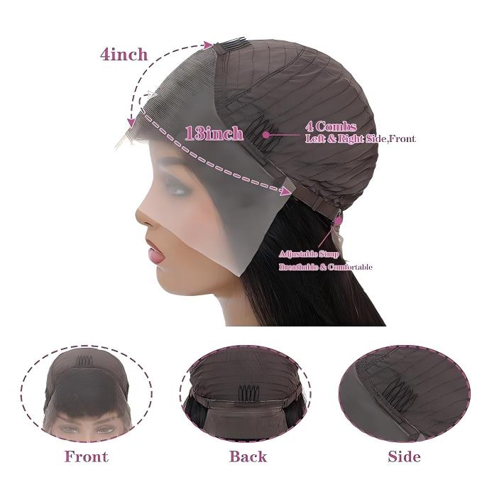 • Luxurious Remy Human Hair: Made from ethically sourced, 100% Remy human hair, known for its exceptional softness, natural luster, and minimal tangling. The hair is silky smooth from root to tip, allowing for a beautiful, flowing straight look.
