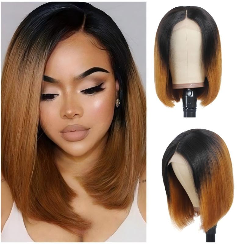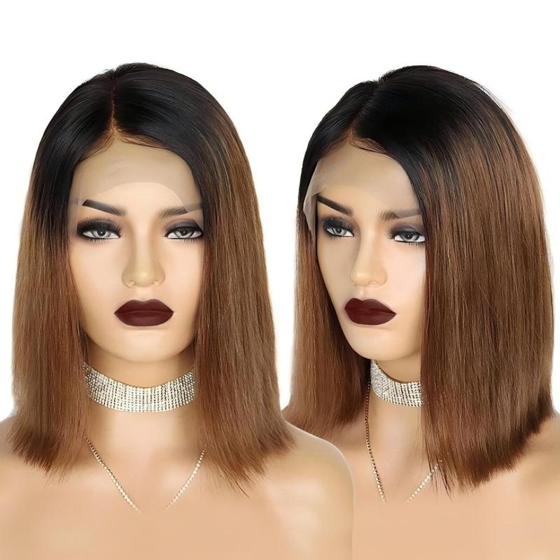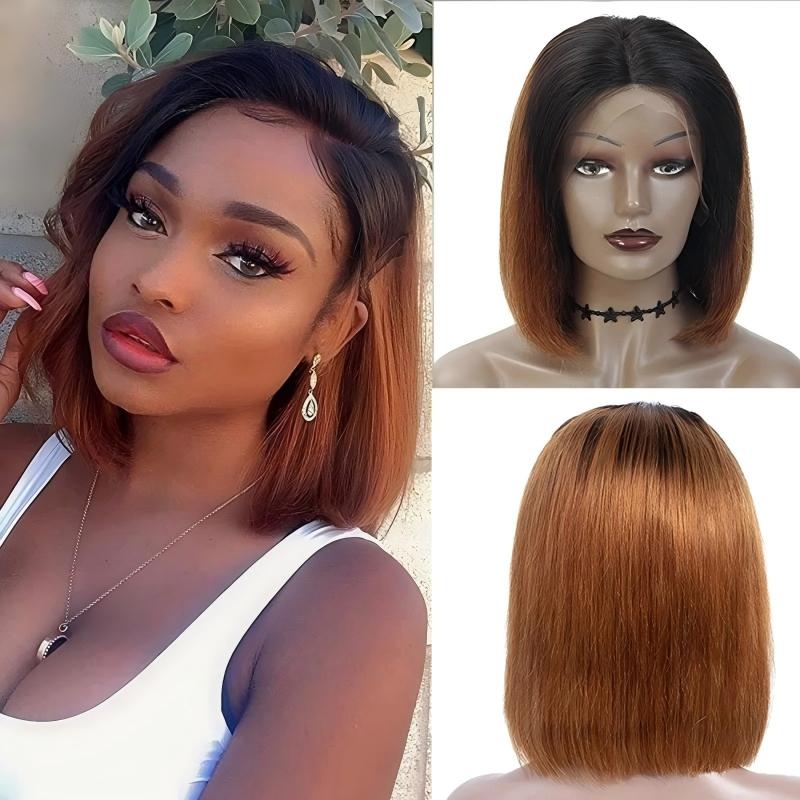 Chic & Sassy: Ombre Copper Brown Straight Bob Lace Front Wig Embrace a sharp, modern look with our premium Straight Bob Lace Front Wig. This wig features a stunning ombre color, transitioning from a natural dark root to a vibrant copper brown, perfect for a high-fashion statement and everyday confidence.