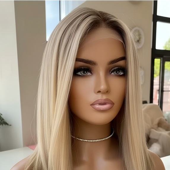 Chic & Modern: Ash Blonde Balayage Straight Lob Wig Embrace a sophisticated, high-fashion look with our premium Straight Lob Wig. This wig features a stunning, cool-toned ash blonde balayage with natural dark roots, crafted for a flawless, salon-quality appearance and effortless style.
