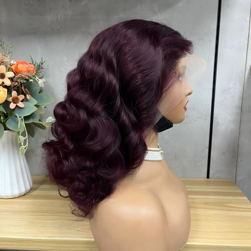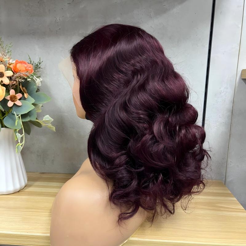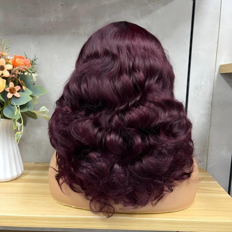 Unleash your inner diva with our exquisite 100% Brazilian Remy Human Hair Lace Wig, featuring luxurious waves in a captivating deep burgundy shade. This wig is designed for those who desire a bold statement, unparalleled natural look, and supreme comfort.