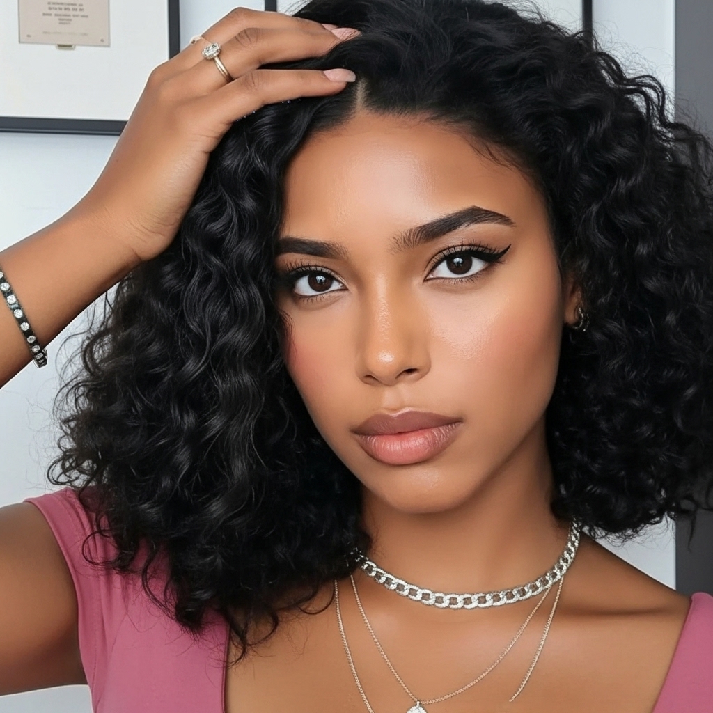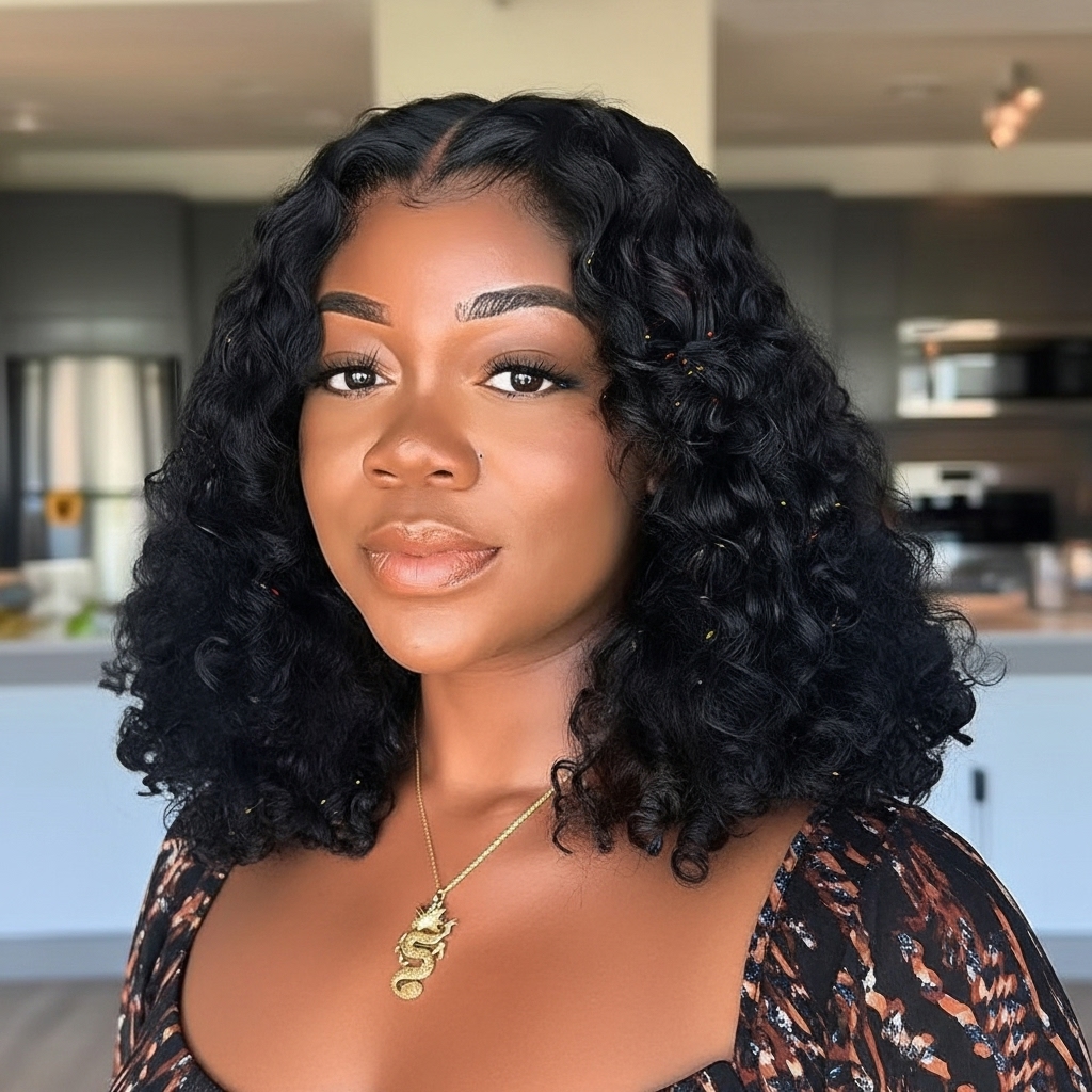 Natural Black Curly Bob Lace Wig